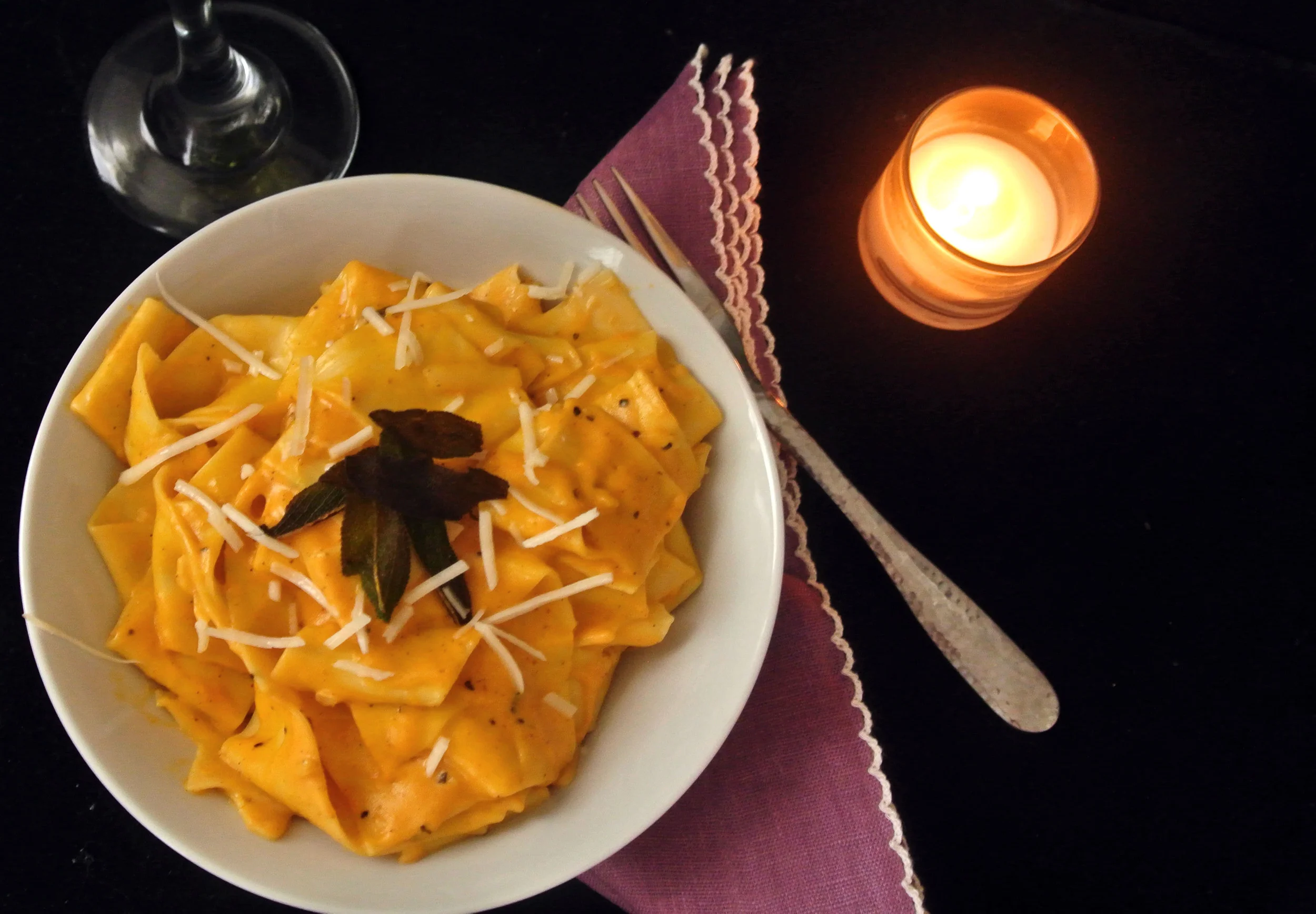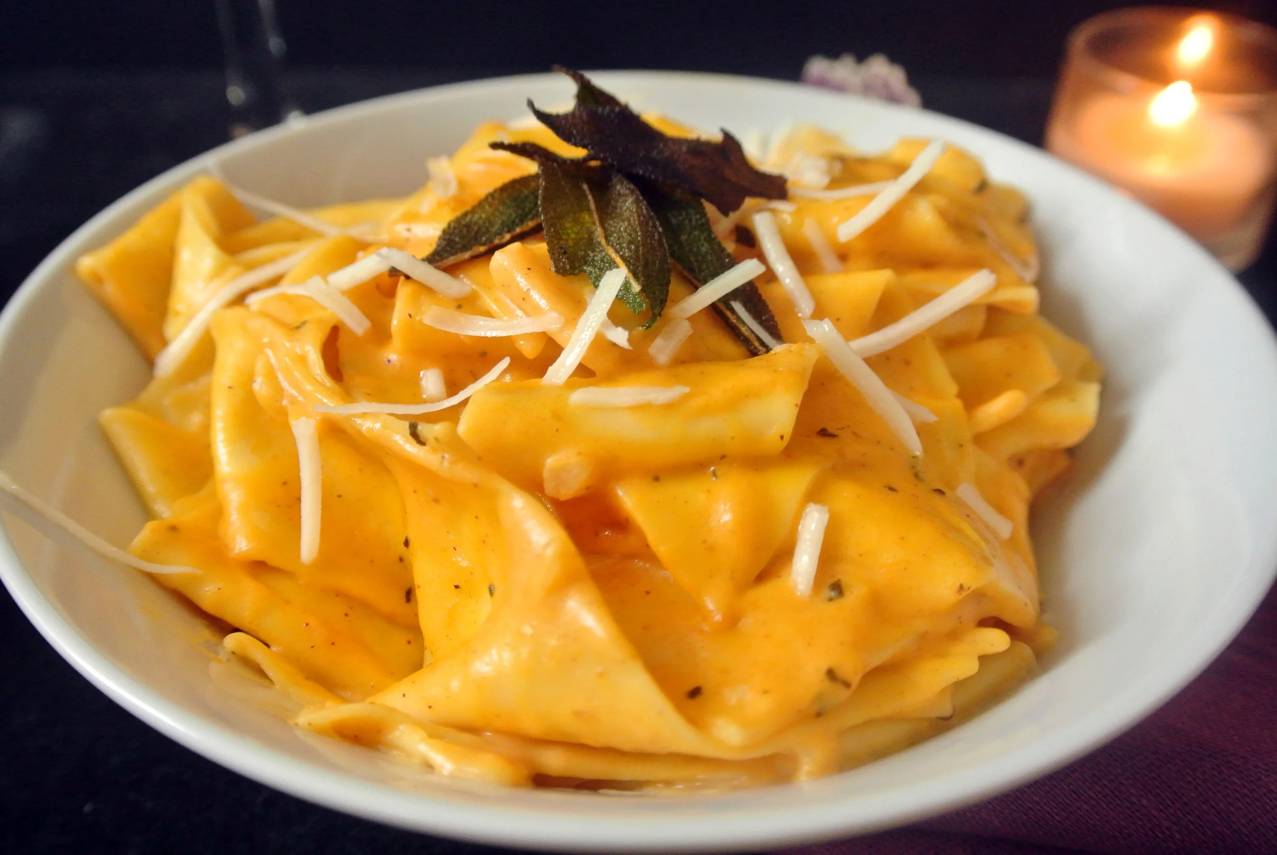 Contrary to popular belief, I don't only eat sweets and baked goods... even though that sounds amazing. Sometimes I've got a craving for the savory. When you're feeling lonely or down, or even if you're feeling just fine, a warm bowl of pasta is just what you need to bring you a new level of happiness. I mean, carbs, right? Carbs are always comforting. The pumpkin cream sauce doesn't hurt either.