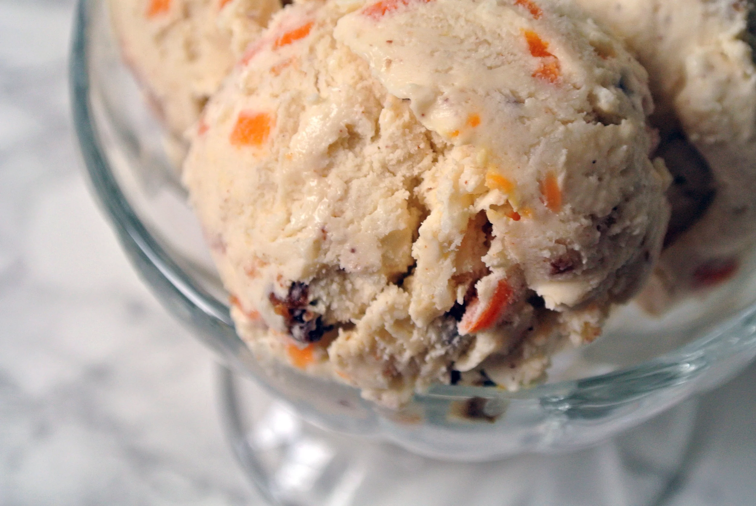 What could be better than the creaminess of a rich cream cheese frosting combined with warm autumnal spices for an ice cream base and the crunch and texture of carrot cake fillings? NOTHING. Nothing I tell you! It's all the best parts of carrot cake combined into a scoop of cold indulgence.