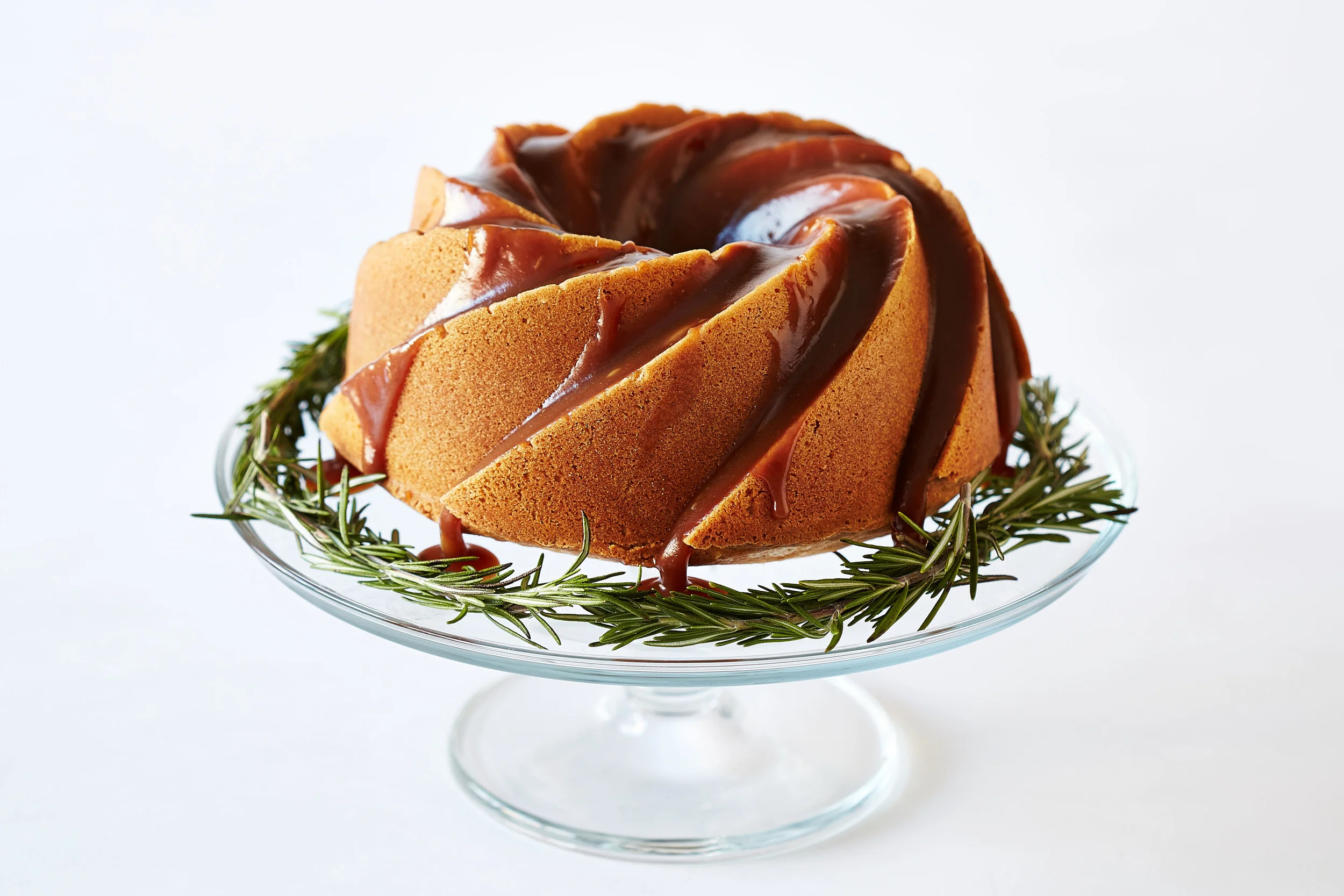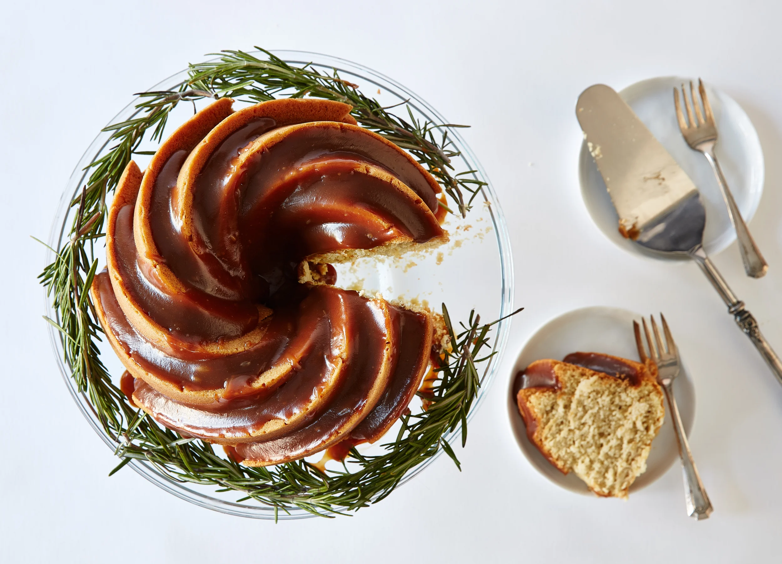 Vanilla Bean Bundt with Rosemary Caramel Sauce.