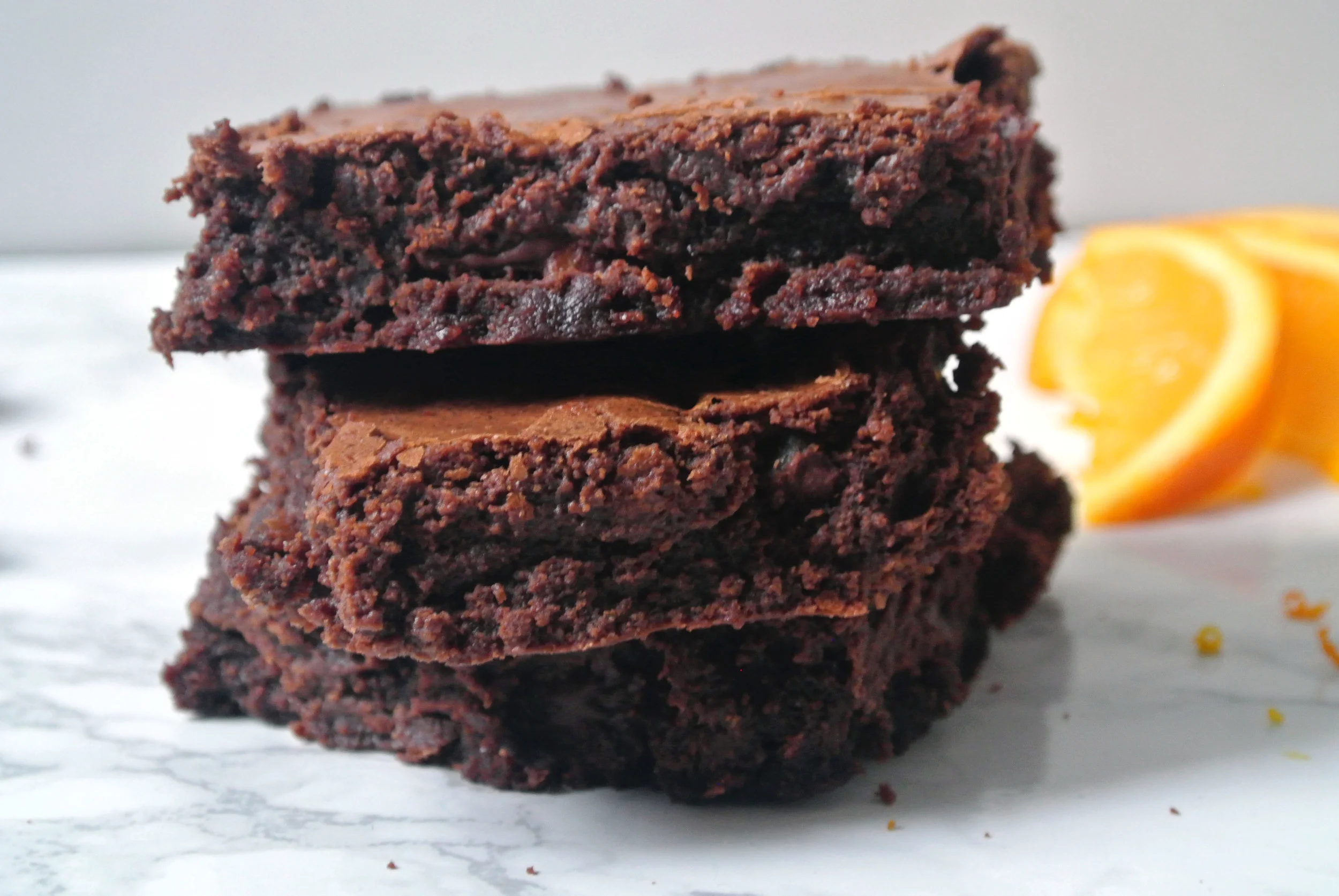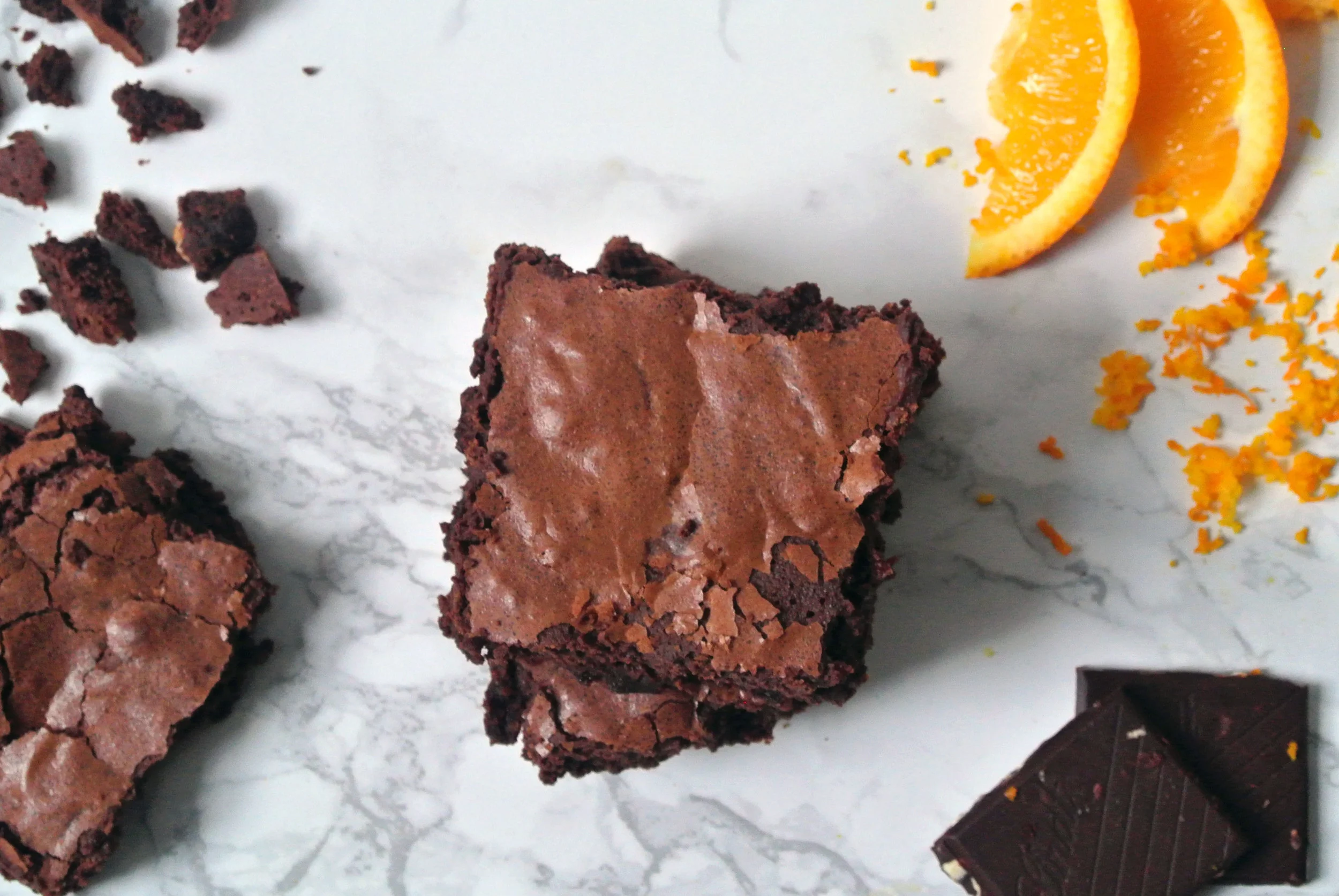 Anywho, once I decided I was passionate about chocolate oranges or whatever I wanted to create something special and rich. I used my all time favorite modified Martha/Goddess recipe and spiced it up with a little orange zest, extract, and Lindt Chocolate. UGH. UGHHHHH. (That's me moaning guys...don't get weird about it.) These are so darn good it makes me want to cry. Tears of chocolate. When I die, bury me in a river of chocolate orange please. Every bite is like a fudgy, flavorful dollop of Terry's dark chocolate orange happiness disguised in brownie form.