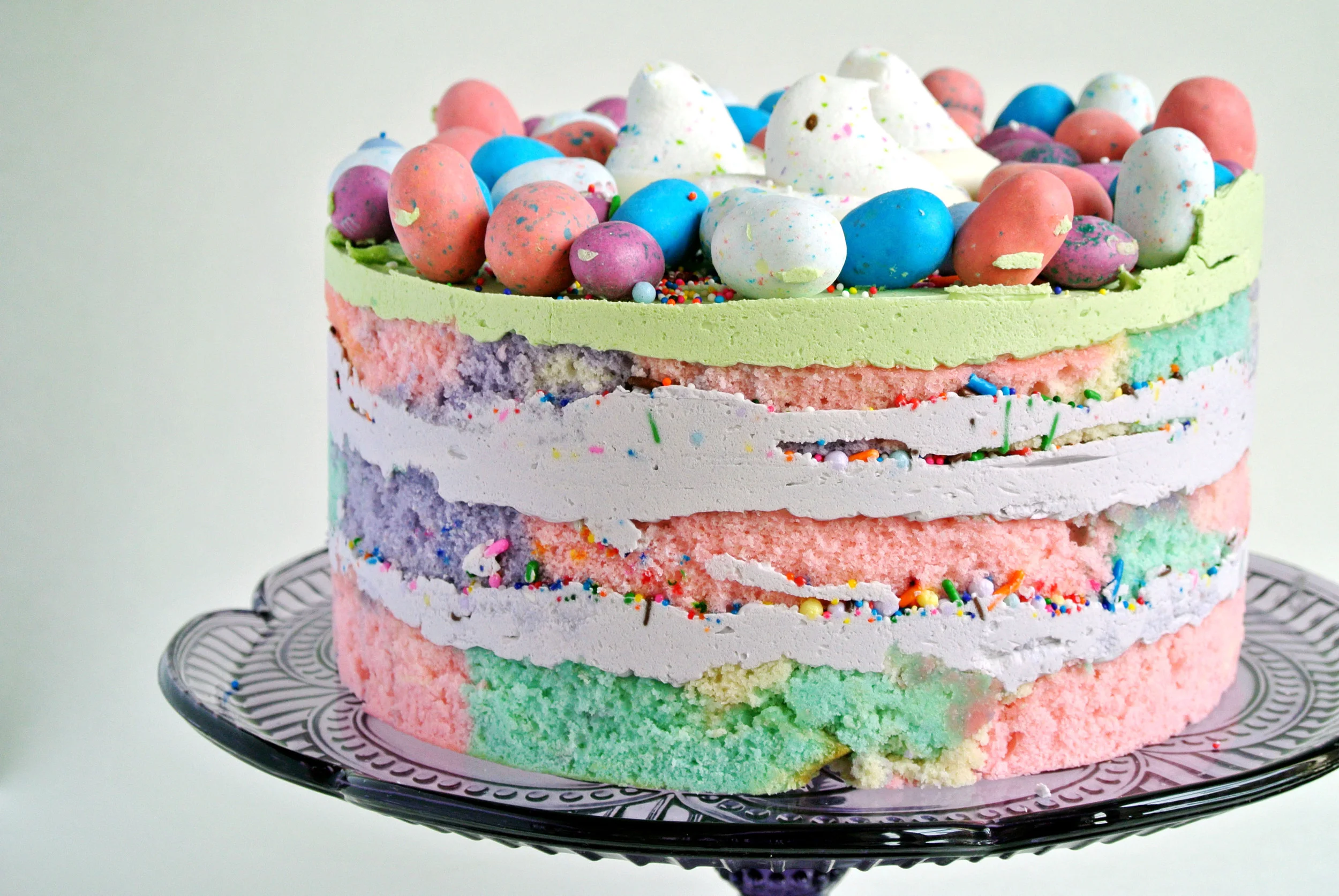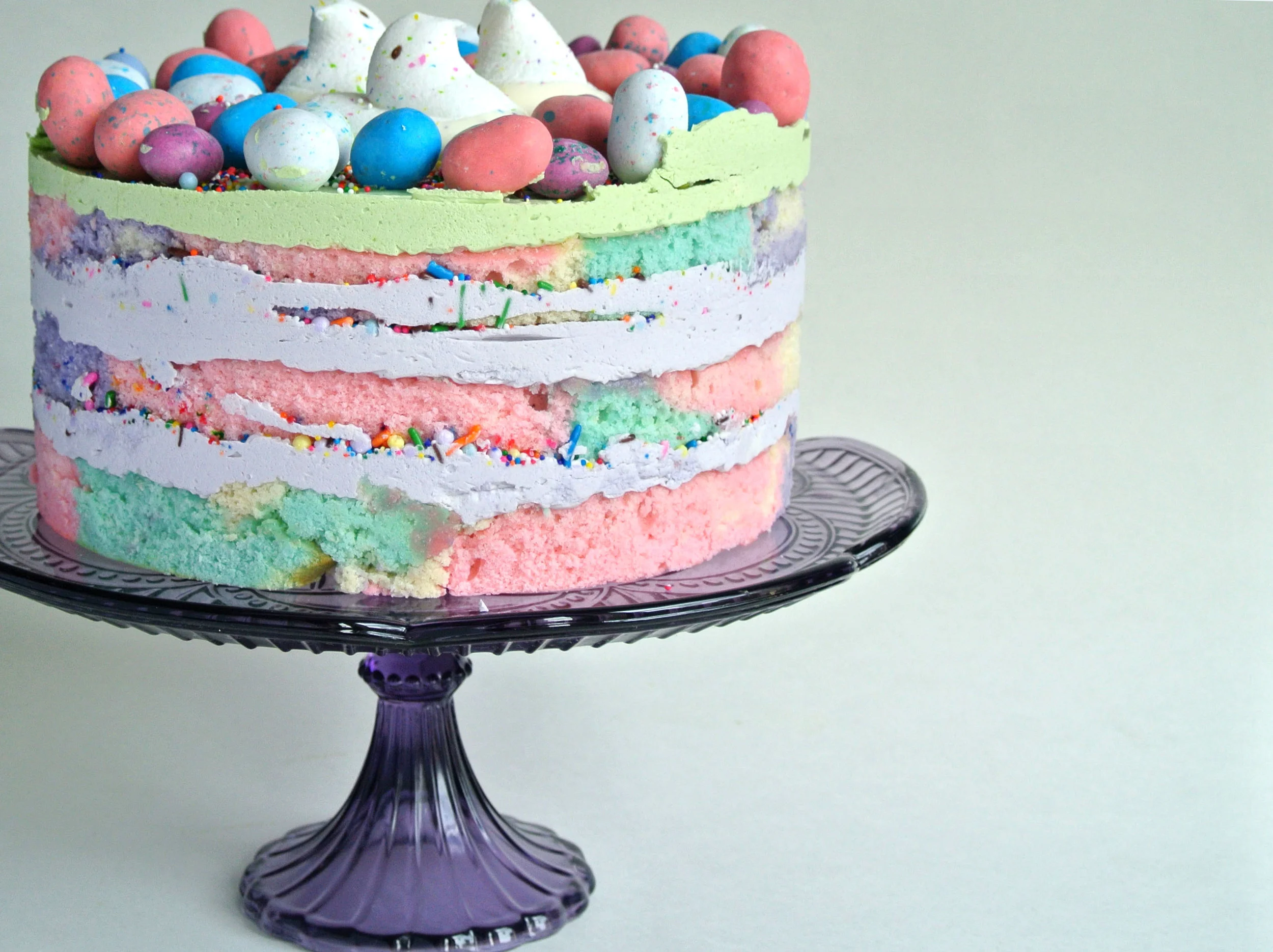 Alright, so I am a little late to the party, but... actually I do not have an excuse for delaying the post of this fabulous, pastel, Easter-wonderland of a cake. Or at least not a legitimate excuse. Binge watching Quantico? Laziness? Trying desperately to find a full-time job because I am tired of sitting on the couch eating cake five days a week? Thank baby Jesus I have a gym membership again or else this slow season would make me gain an extra twenty pounds. I mean, how can you say no to a bite of this rainbow deliciousness???