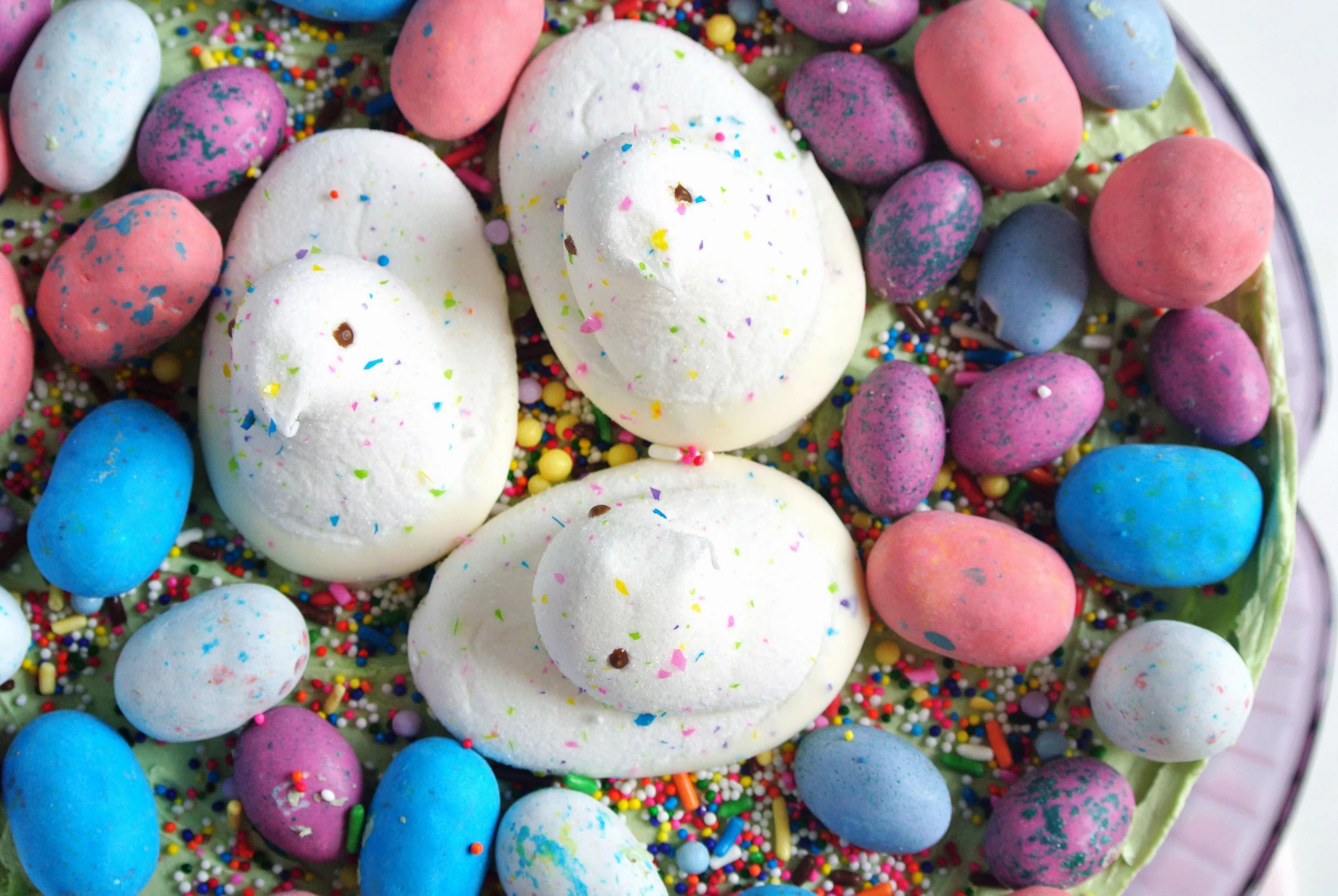 So while I may be a little late to the Easter festivities, I encourage you to try out this recipe for a kids birthday in the meantime. Just replace the peeps with some other wildly colorful candy and you'll be a winner. Or make it for yourself. Who says only kids like color and candy?! My birthday is coming up and this just might be on the menu.