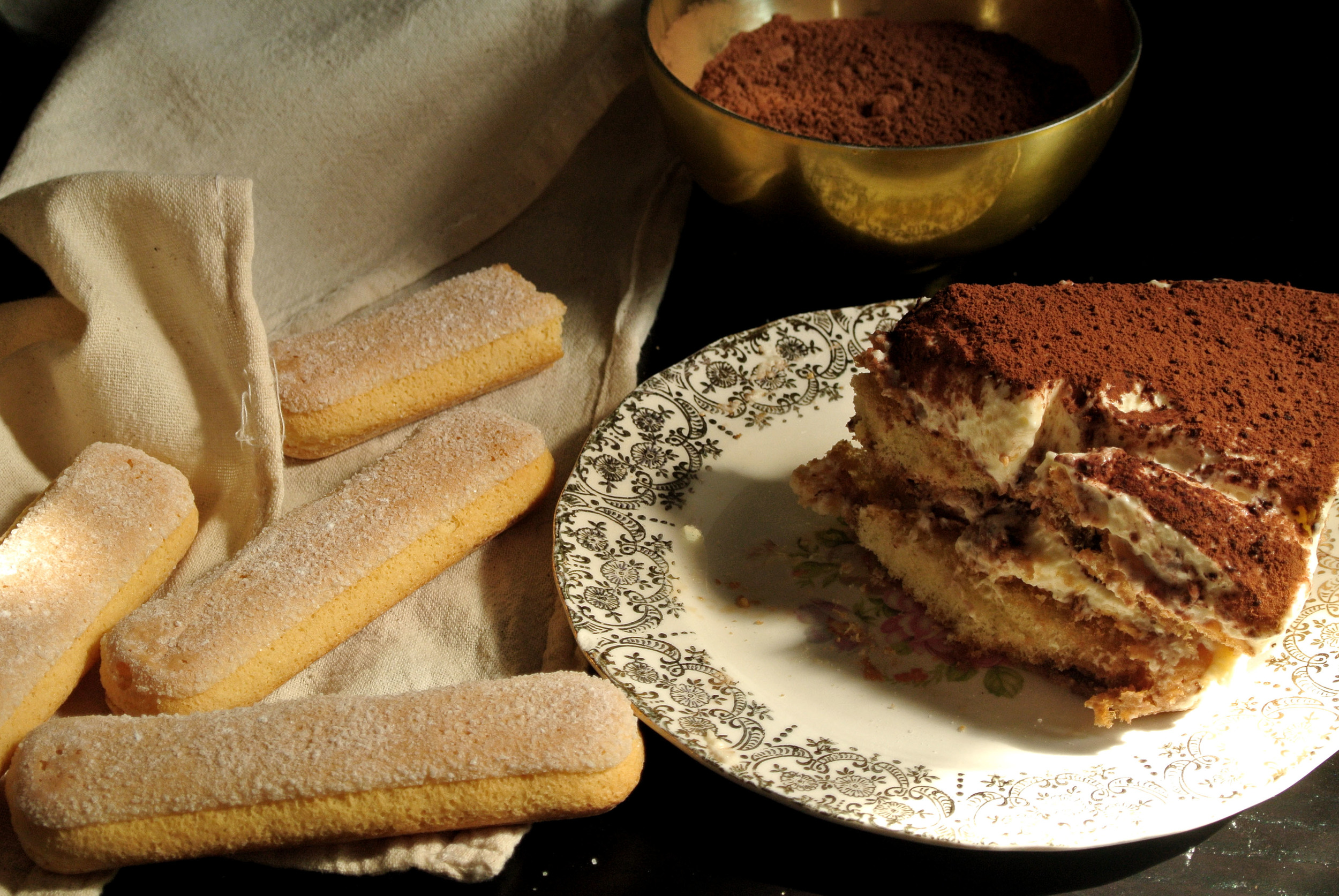 Honestly? On their own ladyfinger biscuits are kind of gross. They're plain, dry, and crunchy. But dipped in coffee and liqueur and covered in a sweet, creamy marscarpone they transform into a magical dessert. I mean, you can't go wrong with chocolate, coffee, and sugar.