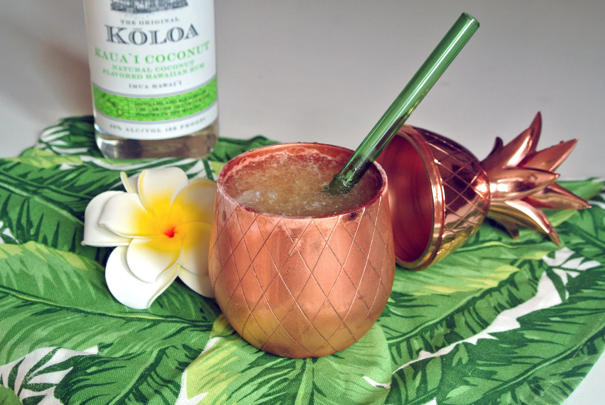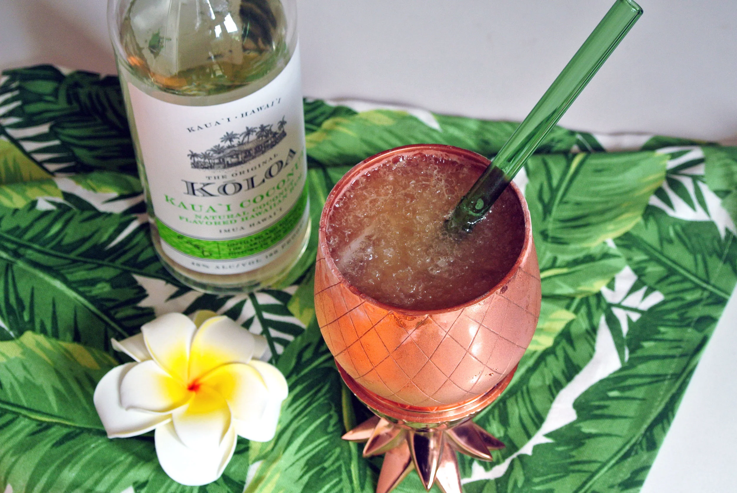 Well, sadly, the rain did follow me to Kauai but that didn't stop us from enjoying sunny breaks on the beach and delicious fish tacos indoors. There's something about being in Hawaii that just makes you relax a little more, even when there are flash flood warnings. Maybe its the friendly people, or the lush greenery, but I'd like to think the tropical fruit helps. By the time it was time to leave, I knew I had to create a special drink to capture the spirit of our Hawaiian vacation. I picked a bottle of Koloa Coconut Rum and started brainstorming.